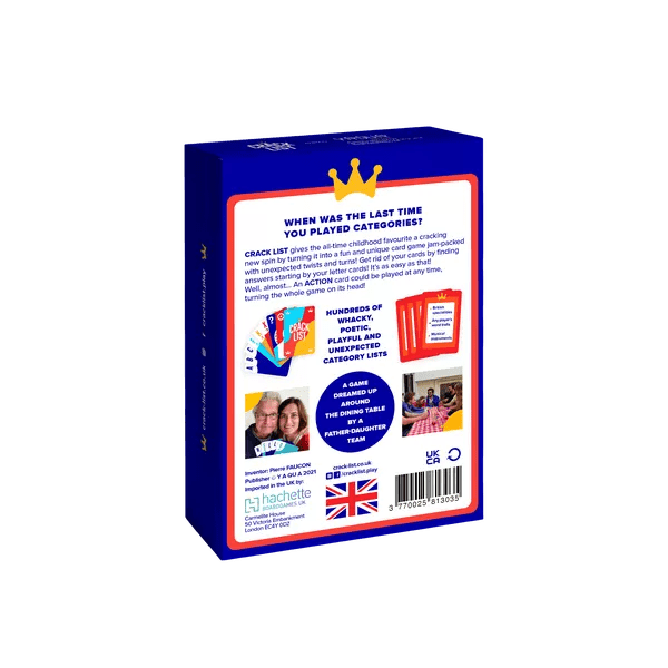The most difficult letters include some "take that" cards, and multiple Crack List cards are used during a single game, changing the categories of words to guess.