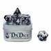 Each dice set comes with the 7 poly dice you need to play including; a D20, D12, D10, D%, D8, D4, and a D4. Alongside that, you'll get a metal carry tin to keep them safe and secure between adventures and a collectible potion card to cause some chaos at the table.